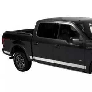 Add some style and protection with these stainless-steel rocker panel moldings. The highly polished moldings feature F-150 etched into the front door panels. Panels are custom fit for both sides of your truck. Constructed of highly polished 304 stainless-steel. Installs easily with pre-applied 3M automotive tape. Exterior Trim Kit by Putco® - Stainless Steel Side Molding Kit, Bodyside and Bed, Super Cab Cab, 6.5 Bed.